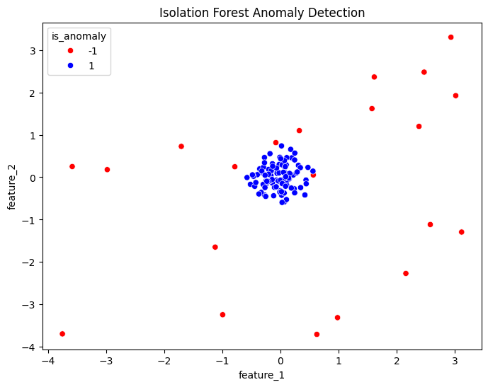 Print Anomaly Counts: The output will print how many anomalies (-1) and normal data points (1) are detected. For example: